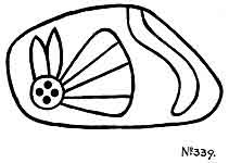 A glyph, generally a circle but sometimes oblong with two parallel lines drawn through its center dividing it into three parts as shown Cut. 1 (Niven's Mexican Tablet No. 2379), is a common universal symbol.